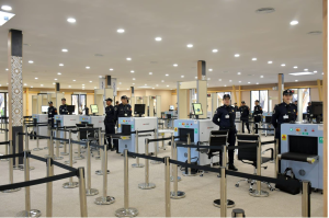 وعلى مستوى بوابات القرية، تم تنصيب مستوى ثاني من المراقبة الأمنية، من خلال اعتماء أجهزة للمسح الضوئي والتفتيش باستعمال تقنيات جد متطورة، قادرة على كشف كافة أنواع التهديدات ومصادر الخطر، فضلا عن توفير بوابات إلكترونية ذكية وعناصر بشرية عالية الخبرة في التفتيش الدقيق. مدعومة بفرق من الشرطة السينوتقنية تتوفر على مجموعة من الكلاب المدربة على كشف جميع أنواع المتفجرات والمواد الكيماوية الخطيرة.