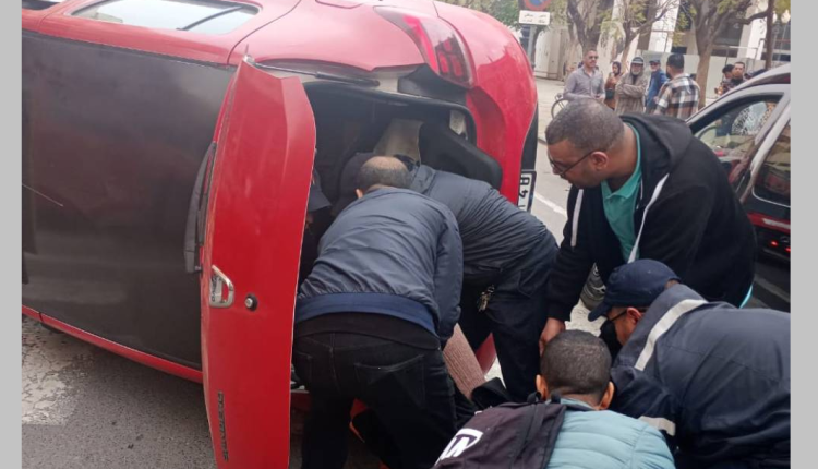 عرف شارع محمد الخامس حادثة سير ،صباح اليوم الخميس 21 مارس الجاري ، أدت إلى انقلاب سيارة أجرة من الصنف الثاني.