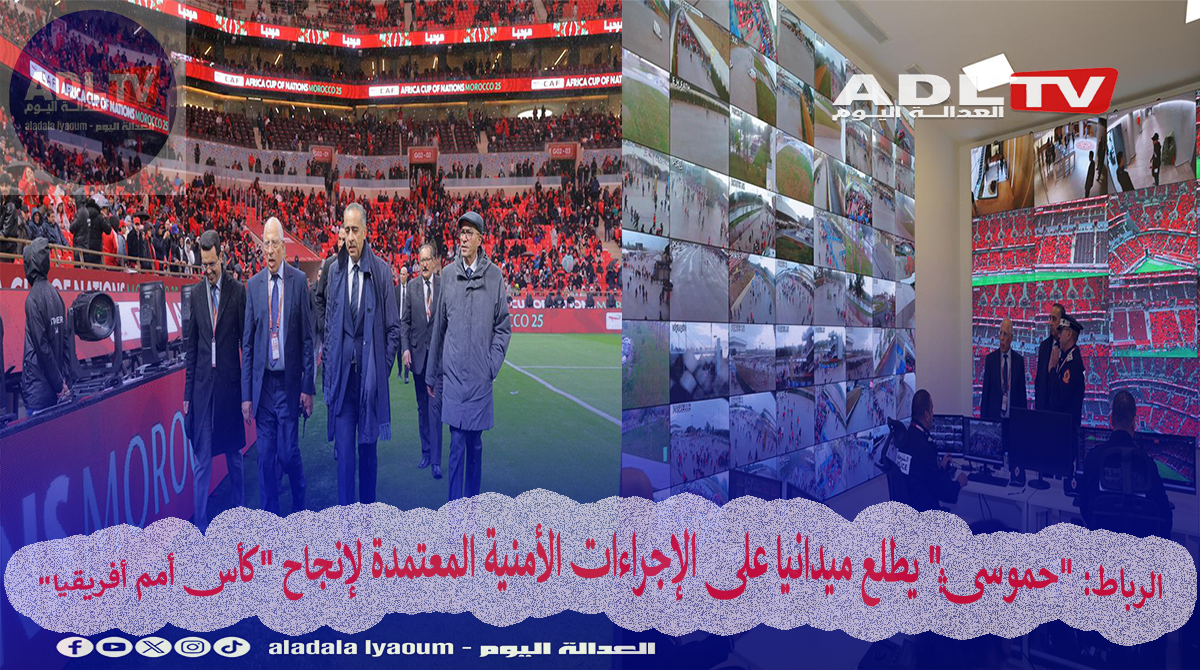 اطلع “المدير العام للأمن الوطني ولمراقبة التراب الوطني”، “عبد اللطيف حموشي”، زوال اليوم الأحد. على آخر الترتيبات الأمنية المعتمدة لتأمين منافسات “كأس أمم إفريقيا لكرة القدم” التي تحتضنها بلادنا.