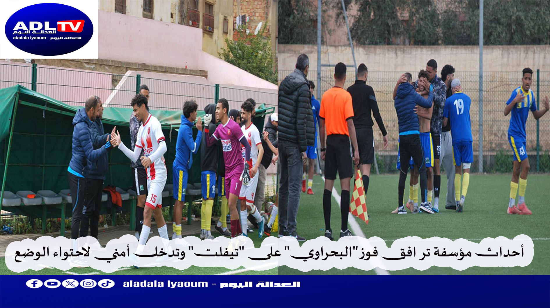 وكان اللقاء الذي جمع الفريقين قد انتهى بفوز الفريق “البحراوي” بثلاثة أهداف مقابل هدفين. على الرغم من تأخره بهدفين دون رد خلال الجولة الأولى. غير أن نهاية المباراة شهدت توترا متصاعدا عقب احتفال أحد لاعبي الفريق الفائز بطريقة وصفت بغير رياضية، ما أثار احتجاج لاعبي الفريق المضيف وعدد من مكوناته.