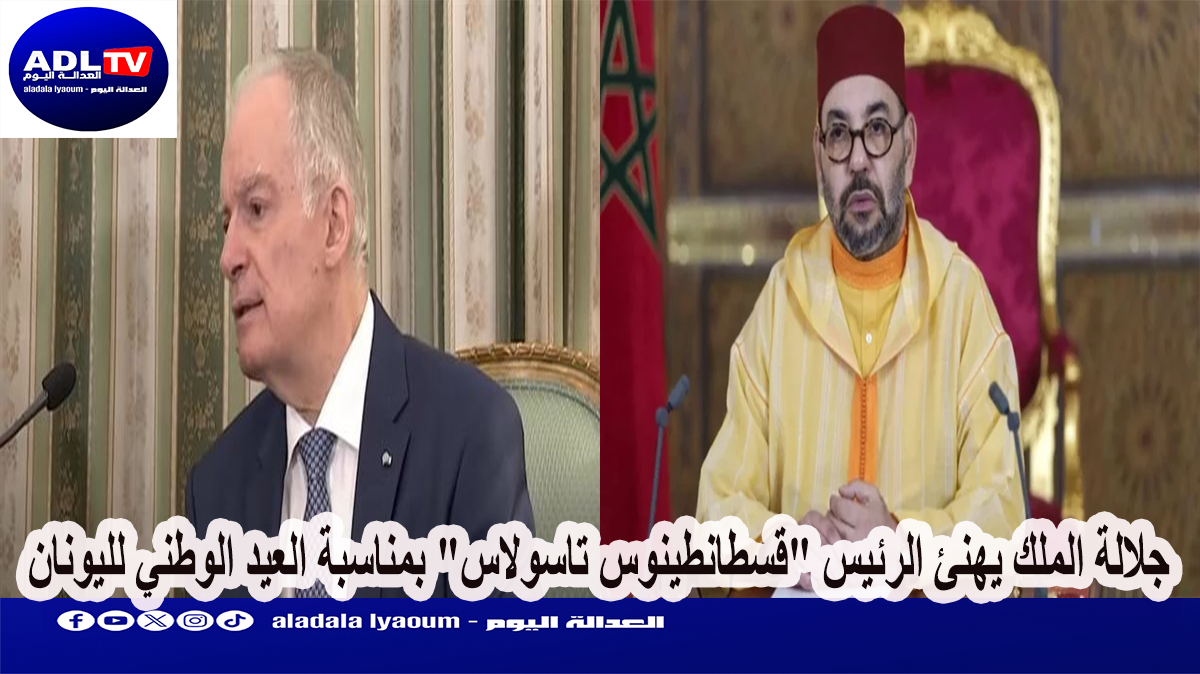 أبرق صاحب الجلالة الملك، “محمد السادس”، حفظه الله. مهنأ رئيس جمهورية “اليونان”، “قنسطانطينوس تاسولاس”. بمناسبة العيد الوطني لبلاده.