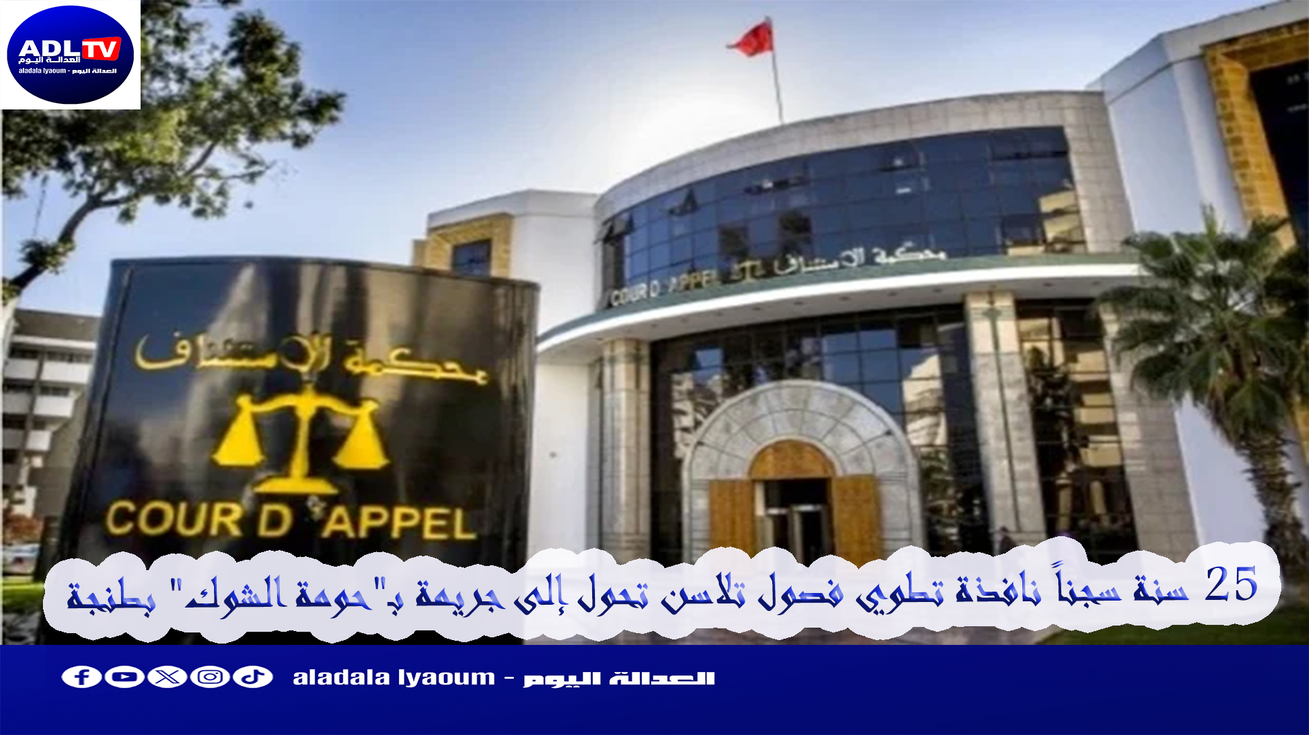 أدانت غرفة الجنايات بمحكمة الاستئناف بطنجة، شابا يبلغ من العمر 21 سنة. بـ 25 سنة سجنا نافذة. بعد أن تابعته هيئة المحكمة من أجل جناية القتل العمد مع سبق الإصرار والترصد.